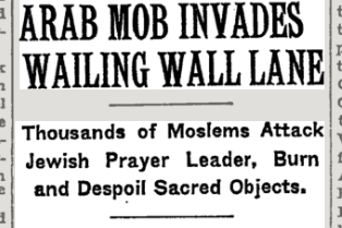 On peux trouver quelques histoires mentionnant des « milliers » de musulmans qui se sont révoltés à Jérusalem et ont attaqué des juifs avant les massacres quelques mois plus tard, ainsi que des milliers de musulmans qui célèbrent le festival « Nebi Musa », un festival musulman inventé et calculé selon au calendrier chrétien pour coïncider et interférer avec les célébrations de Pâques à Jérusalem.