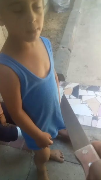 Dans la vidéo, il n’a pas menacé de se suicider s’il n’obtenait pas ce qu’il voulait. Non – au lieu de cela, il a menacé de massacrer ses 13 enfants. (Il n’a pas mentionné les deux femmes qu’il semble avoir) avec un couteau.