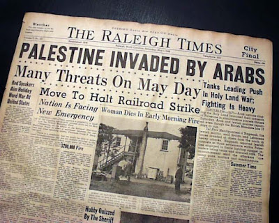 Même en 1948, le monde savait encore ce qui était quoi et qui était qui. Un peuple était autochtone, l’autre un étranger belliqueux. L’ AP le savait et le Boston Evening Globe l’a répété. Le Raleigh Times aussi (et de nombreux autres, trop nombreux pour être mentionnés).